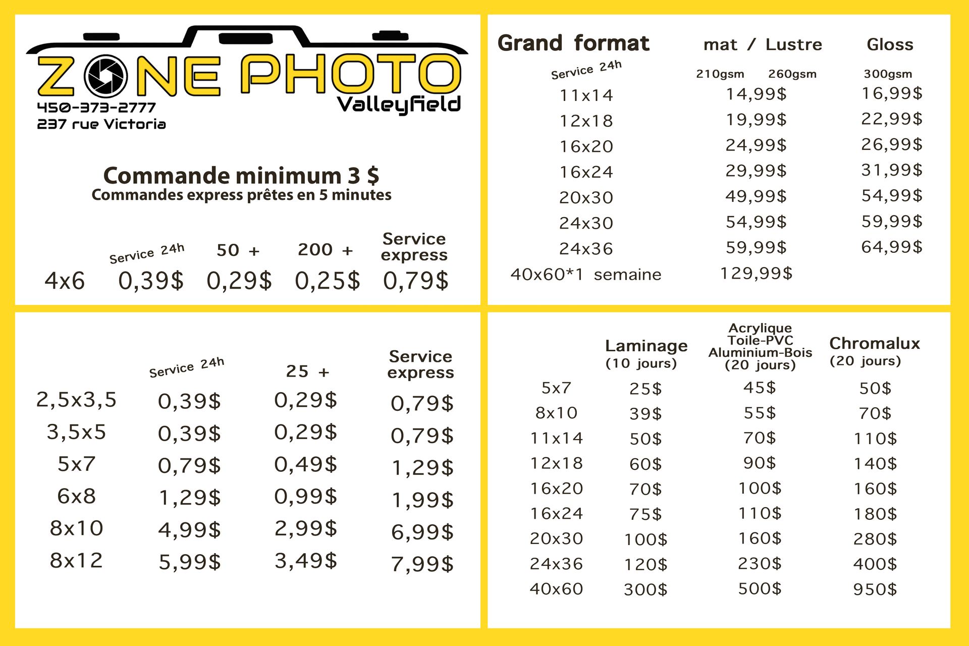Commandez des photos de haute qualité sur du papier mat ou brillant de qualité photo, dans le confort de votre foyer ou de votre bureau.